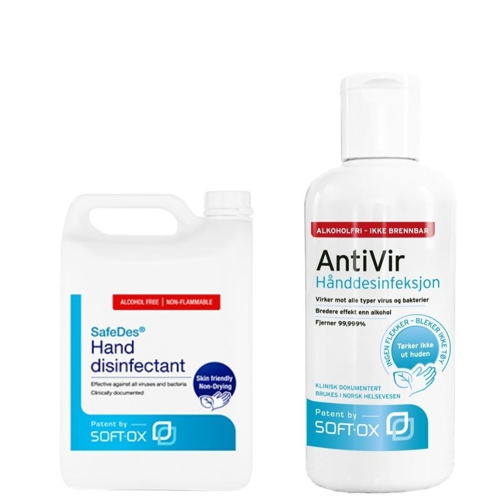 Hånddesinfeksjon - SafeDes fra Softox® er en norskprodusert hånddesinfeksjon med svært god effekt mot virus og bakterier, uten å skade huden. Tar koronavirus på under 15 sek. Klinisk dokumentert og brukes i norsk helsevesen.