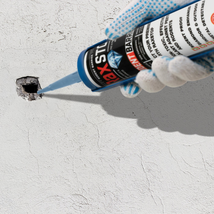 Raxstop Rodent Sealant er en profesjonell tetningsmasse utviklet og produsert i Danmark, som danner en mekanisk og vannbestandig barriere mot gnagere. Ansett som det beste og sterkeste "MouseStop produktet" på markedet da det inneholde syntetiske diamanter og stålpartikler. Den er giftfri, overmalbar og enkel å påføre – både innendørs og utendørs.