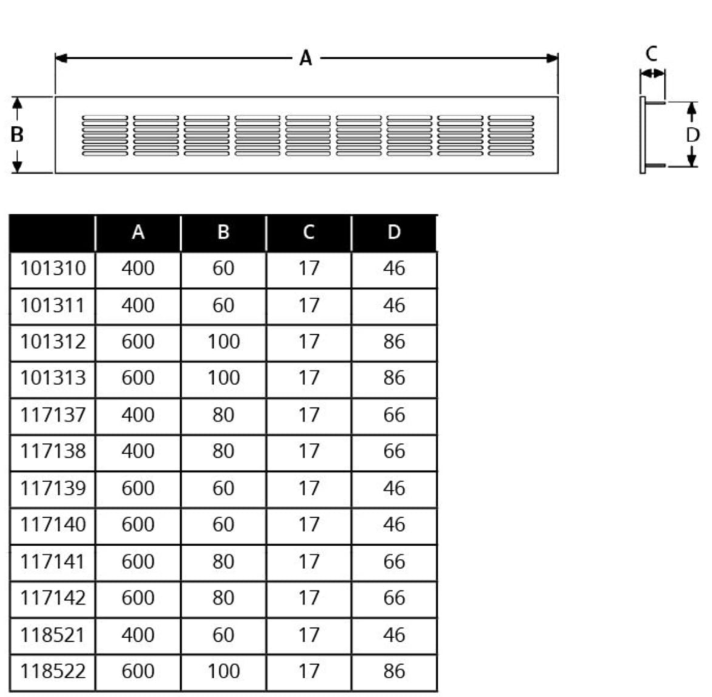 | Produktnavn | Luftspalterist / Overstrømningsrist 400 x 60 mm |