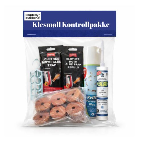 Klesmøll Kontrollpakke gir deg en helhetlig og gjennomtenkt løsning for effektiv bekjempelse av klesmøll. Her kombineres feromonfeller, naturlig forebygging og målrettet behandling i sprekker og skjulesteder – slik en profesjonell skadedyrbekjemper ville gjort det. Du stopper formeringen, reduserer trivselsforholdene og beskytter klær og tekstiler på en trygg måte. Resultatet er bedre kontroll – og et hjem uten klesmøll.